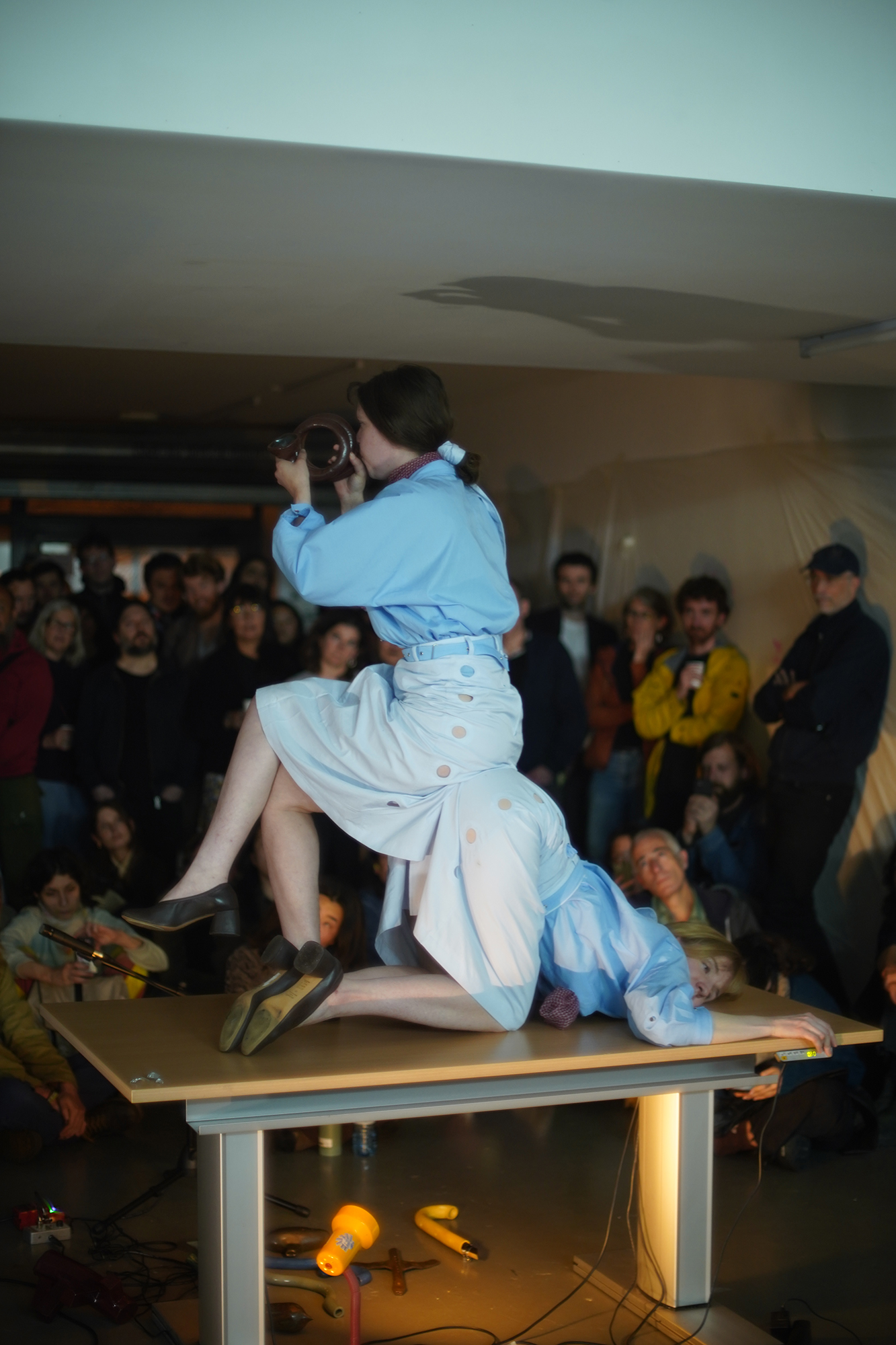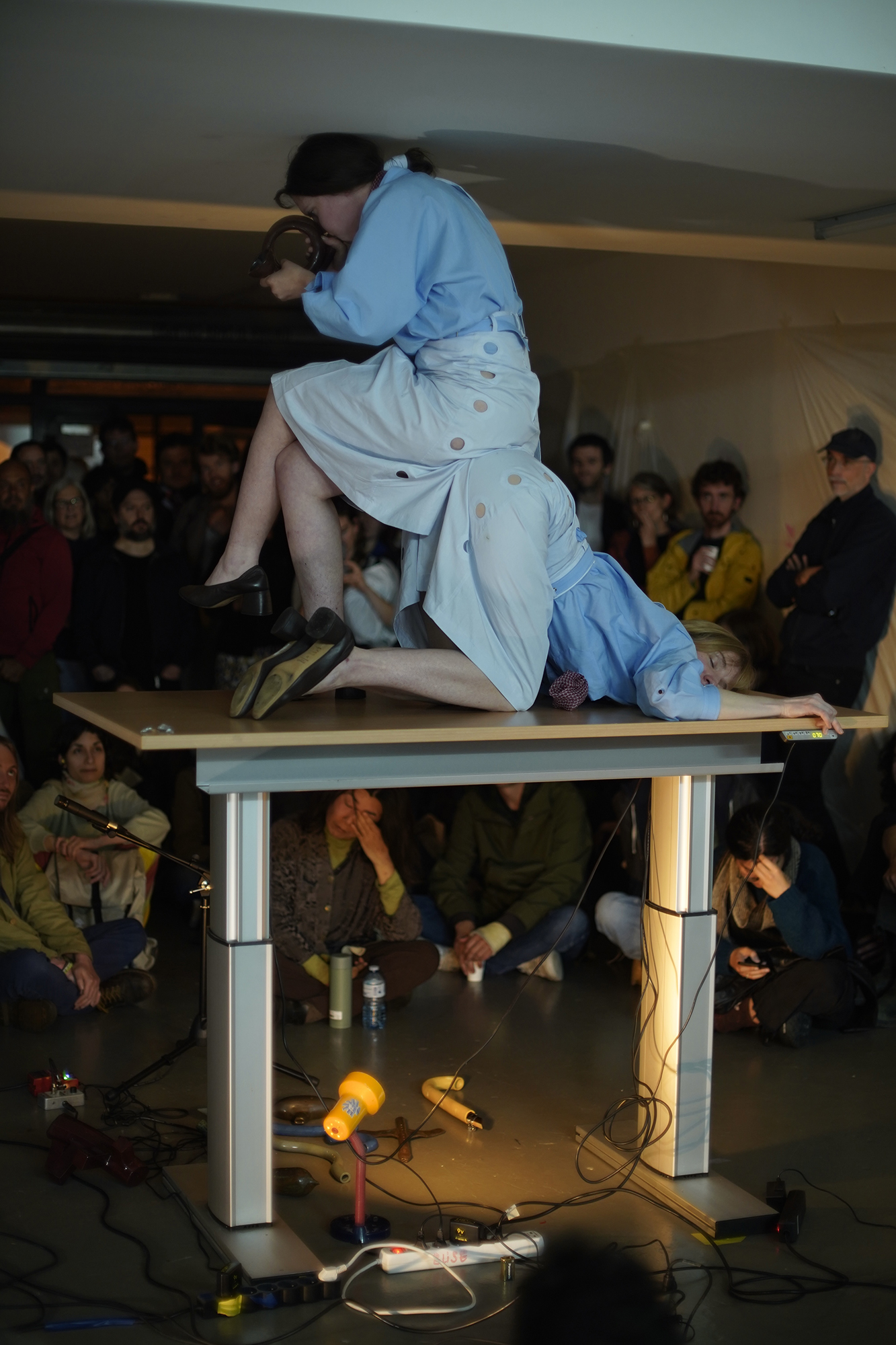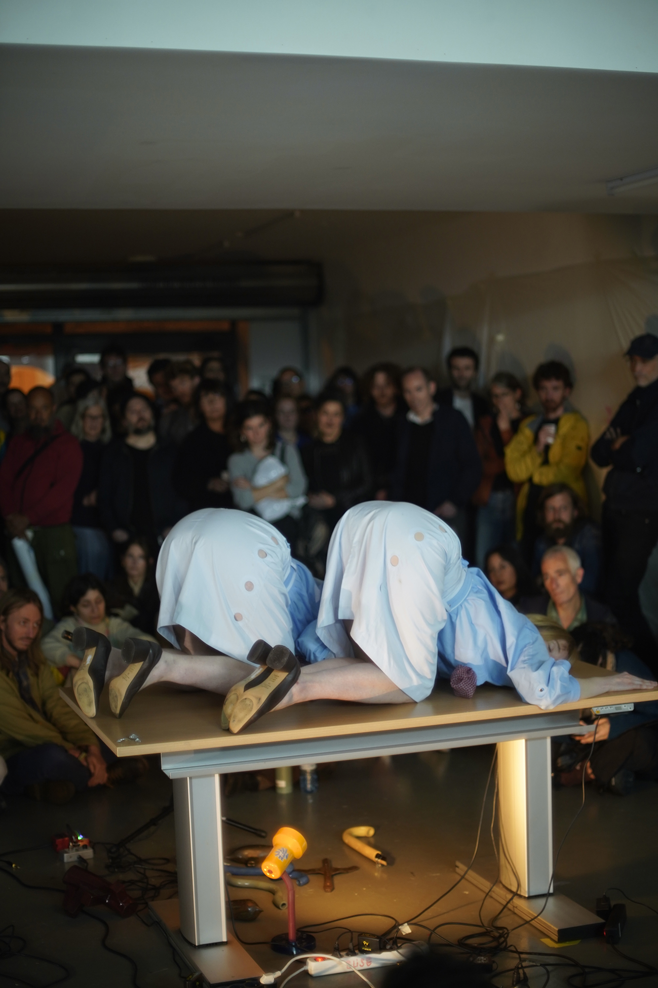 Ceramic instruments, microphones, guitar effect pedals, jackets and hats with embeded electronic circuits, shirts with embeded DIY microphones, motorized desk.